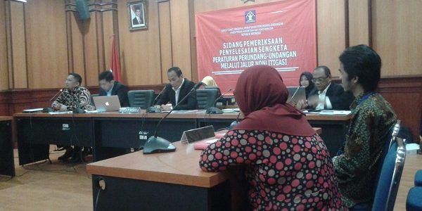 Setelah sekian lama menunggu Andro dan Nurdin didampingi oleh LBH Jakarta mengajukan permohonan sengketa non-litigasi. Permohonan sengketa tersebut diajukan oleh LBH Jakarta dengan dasar Peraturan Menteri Hukum dan HAM Nomor 32 Tahun 2017 tentang Tata Cara Penyelesaian Sengketa Peraturan Perundang-Undangan Melalui Jalur Nonlitigasi. Permenkumham tersebut memberi kewenangan Direktorat Jenderal Perundang-Undangan Kementerian Hukum dan HAM untuk memeriksa peraturan perundang-undangan yang tidak harmonis, saling bertentangan dan merugikan masyarakat.