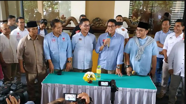 Elite BPN Prabowo-Sandi bersama cawapres nomor urut 02 Sandiaga S Uno saat konferensi pers di Lorin Solo Hotel, Kecamatan Colomadu, Kabupaten Karanganyar, beberapa waktu lalu.