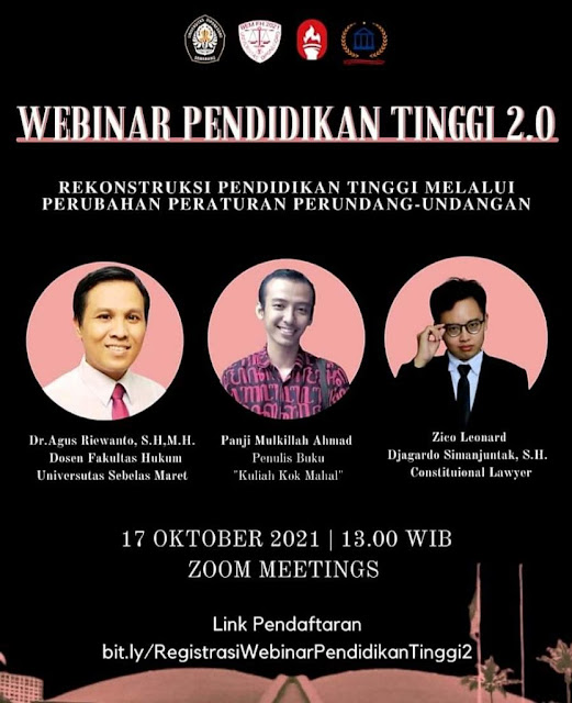 Webinar Pendidikan Tinggi 2.0 : “Rekonstruksi Pendidikan Tinggi Melalui Perubahan Pertuaran Perundang-Undangan
