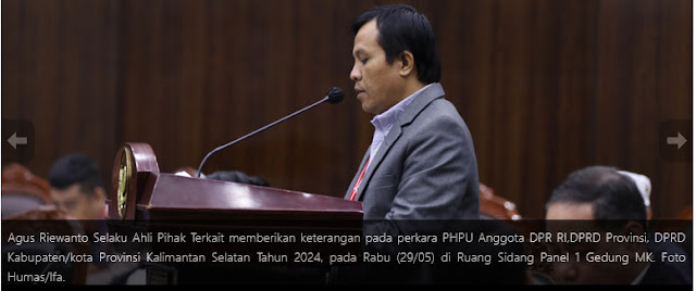 Rabu, 29 Mei 2024 | 18:27 WIB JAKARTA, HUMAS MKRI – Sidang Perkara Perselisihan Hasil Pemilihan Umum (PHPU) Anggota DPRDKabupaten/Kota Provinsi Kalimantan Selatan kembali digelar Mahkamah[…]