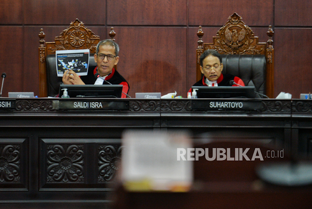 Ketua MK Suhartoyo (kanan) dan Hakim MK Saldi Isra (kiri)
