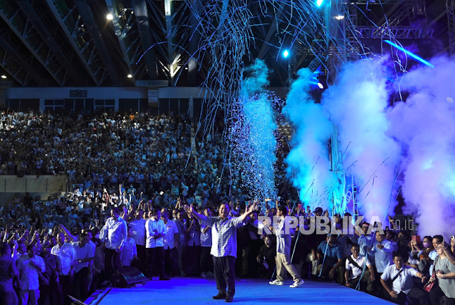 Pasangan Prabowo-Gibran saat pidato kemenangan di Istora Senayan, Jakarta Pusat, Rabu (14/2/2024) malam WIB.