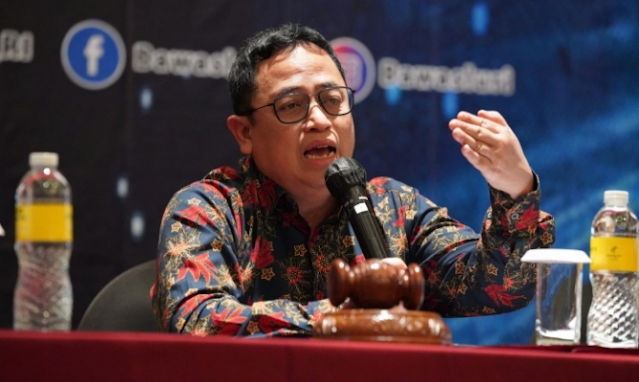 Anggota Bawaslu Puadi saat memberikan arahan dalam Rapat Penyusunan Petunjuk Teknis Penanganan Pelanggaran Pemilu, di Jakarta, Rabu (22/2/2023).