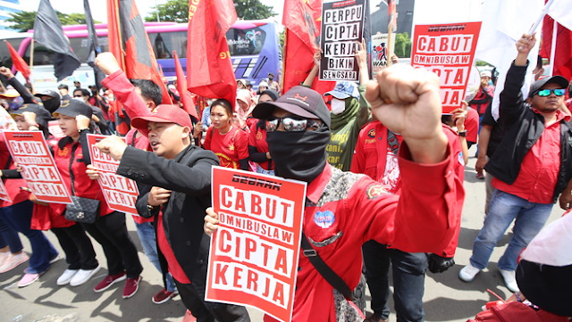 Puluhan buruh saat aksi unjuk rasa di depan gedung DPR RI, Selasa, 10 Januari 2023. Aksi massa menyuarakan penolakan terhadap Perpu Cipta Kerja. (B Universe[…]