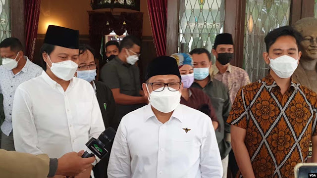 Ketua Umum PKB, Muhaimin Iskandar ( baju putih peci hitam- tengah) menemui Walikota Solo yang juga putra sulung Presiden Jokowi, Gibran Rakabuming Raka (kanan- baju[…]