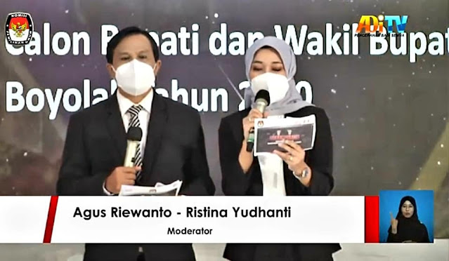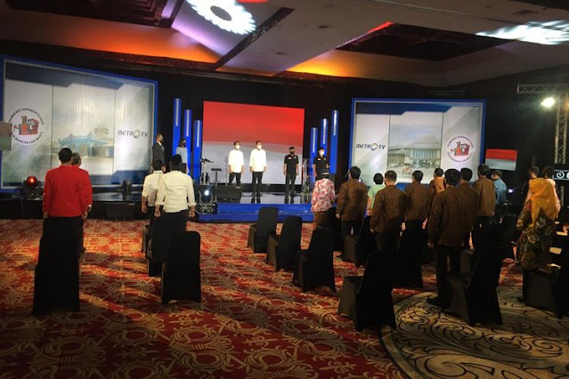 Kedua pasangan calon Wali Kota dan Wakil Wali Kota Solo, Gibran Rakabuming Raka-Teguh Prakosa dan Bagyo Wahyono-FX Supardjo (Bajo) mengikuti debat Pilkada Surakarta 2020.(istimewa)