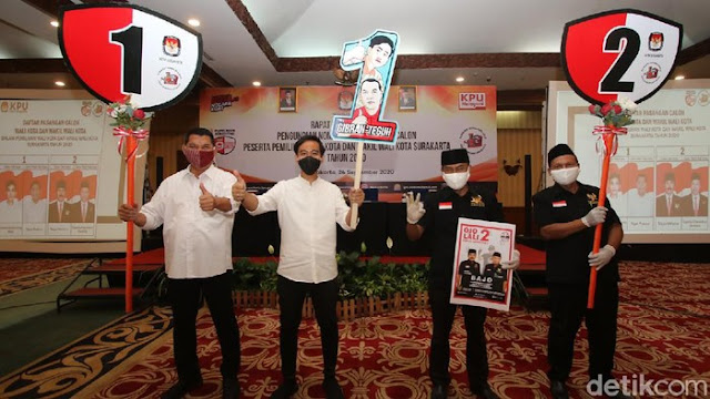 Paslon Gibran-Teguh dan Bajo saat pengundian nomor urut Pilkada Solo (Foto: Agung Mardika/detikcom)