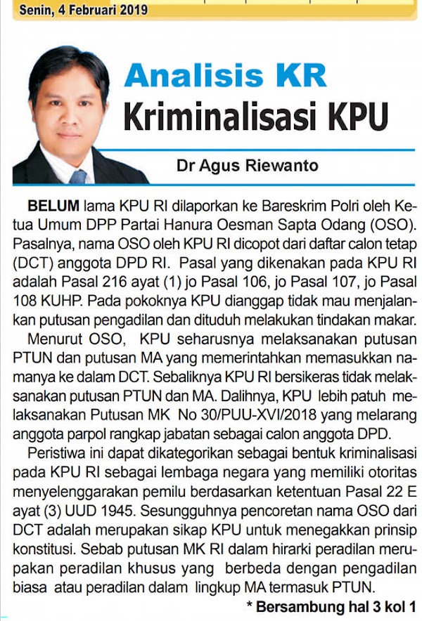 GAGASAN Sabtu 9/2/2019 | 05:00 Pada peringatan Hari Pers Nasional (HPN) tanggal 9 Februari 2019 ini berbeda dari tahun-tahun sebelumnya. Hari ini disuguhi “duka” bagi[…]